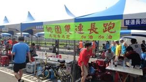 另外這次路跑,我對「桃園雙連長跑」印象深刻,大大的綠底紅字布條,路跑途中的飲水補充站內容豐富—除水、運動飲料、香蕉外,還有仙草、沙士等,而雙連長跑在大會活動會場亦提供免費仙草飲品讓人享用。