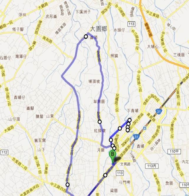 21KM路跑競賽路線圖(取自:2013年桃園縣議會議長盃『騰越飛昇-桃園領航』路跑活動競賽規程第6頁)